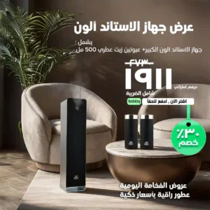 يتضمن هذا العرض المتميز ناشر عطر كبير مستقل واحد وزيتين عطريتين فاخرتين بسعة 500 مل، مما يوفر تغطية عطرية موسعة بأقصى قدر من الكفاءة.