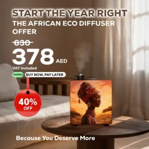 Perfect for homes, offices, retail stores, salons, and hospitality spaces, the Eco African Diffuser creates an inviting atmosphere while reflecting strength, identity, and elegance.