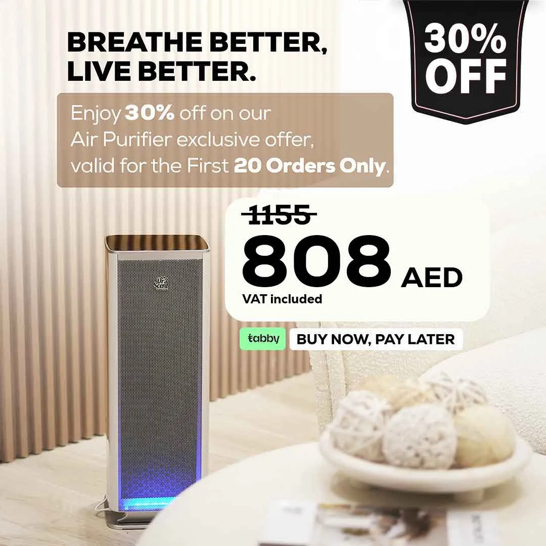 Experience purified comfort with the Dr Scent Air Purifier, designed to eliminate pollutants, odors, and allergens for a fresher living space. Perfect for bedrooms, offices, and medium-sized rooms up to 30 m², this purifier combines smart air quality monitoring with powerful filtration to ensure continuous clean air.