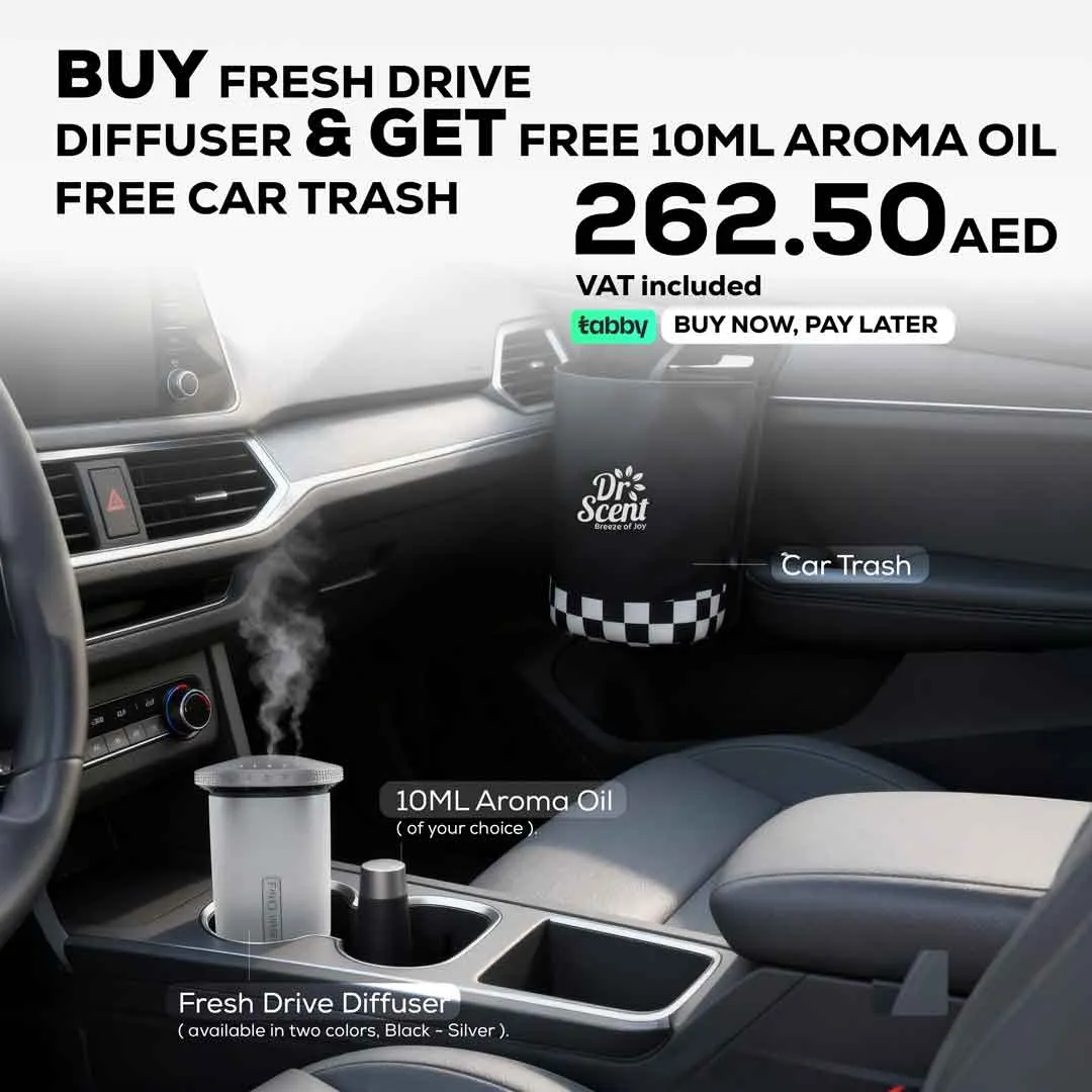 Get the Car Fresh Drive Diffuser with a FREE 10ML aroma oil bottle and Car Trash — Cold Air Diffusion Technology, Powerful & Silent Performance.