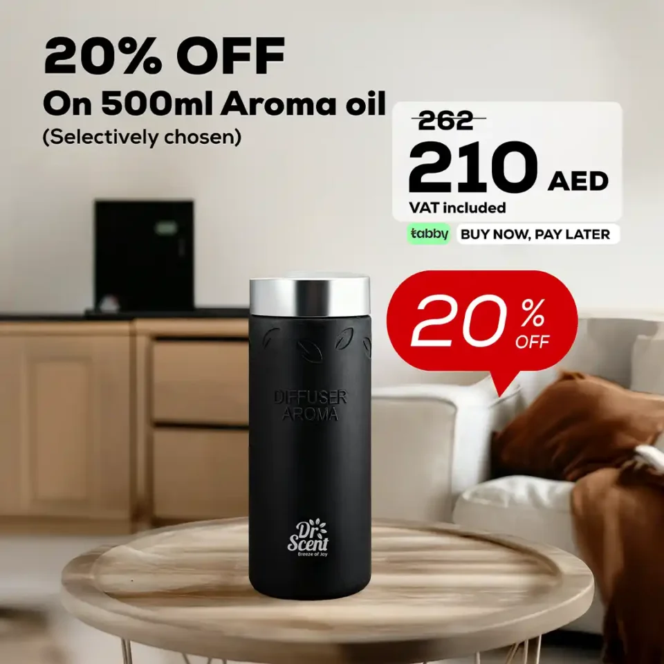 • Premium Aroma Oil (170ml) – High-quality fragrance oil that fills the space with a pleasant and long-lasting scent.