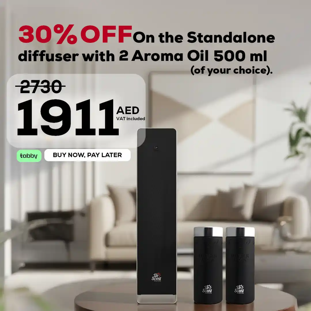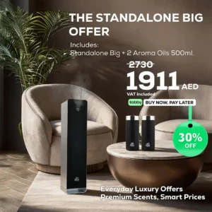 This premium offer includes one Standalone Big diffuser and two 500ml premium aroma oils, delivering extended fragrance coverage with maximum efficiency.